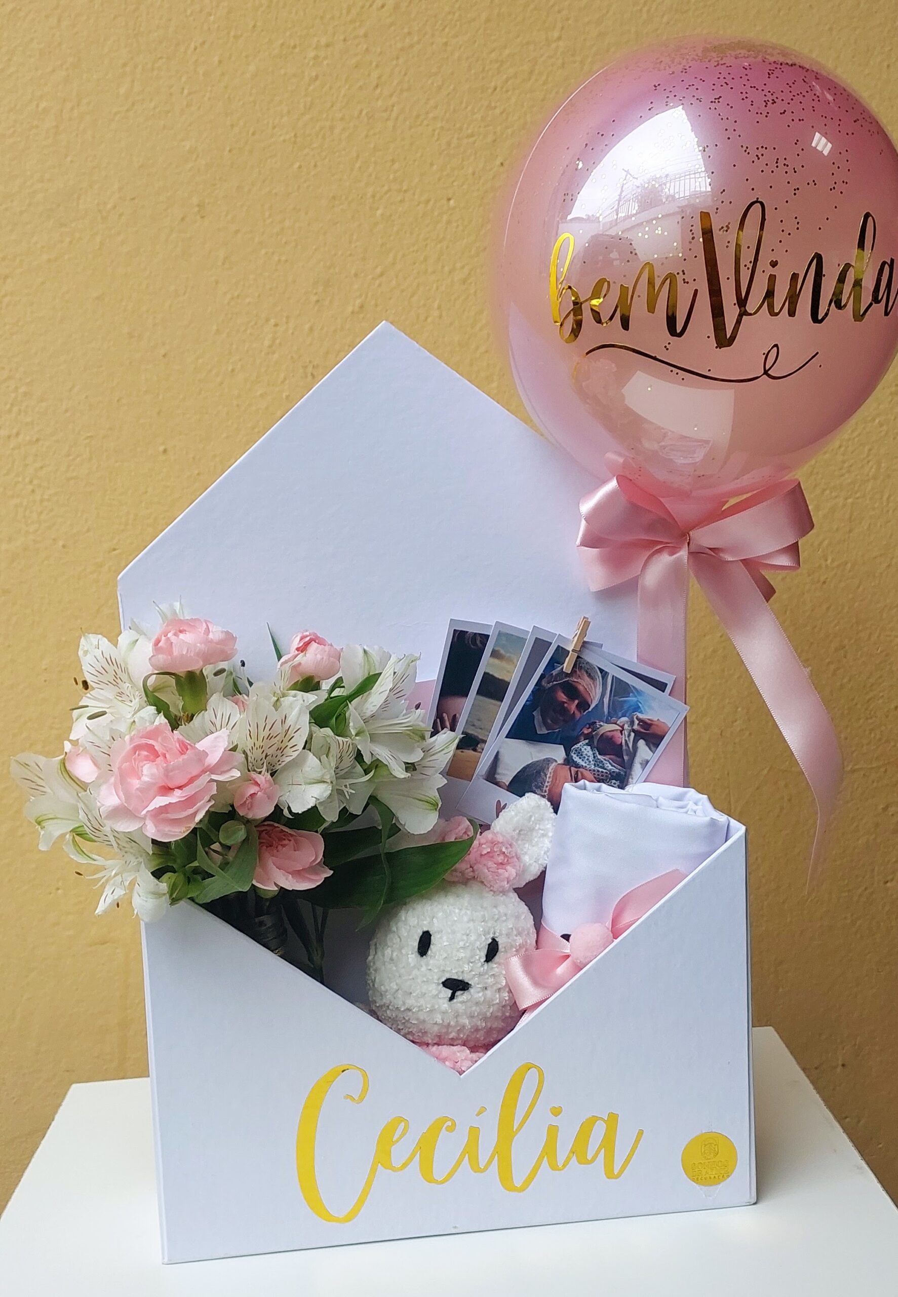 – 1 balão (tamanho P) personalizado com nome ou pequena frase (ex: Seja Bem-Vindo(a))