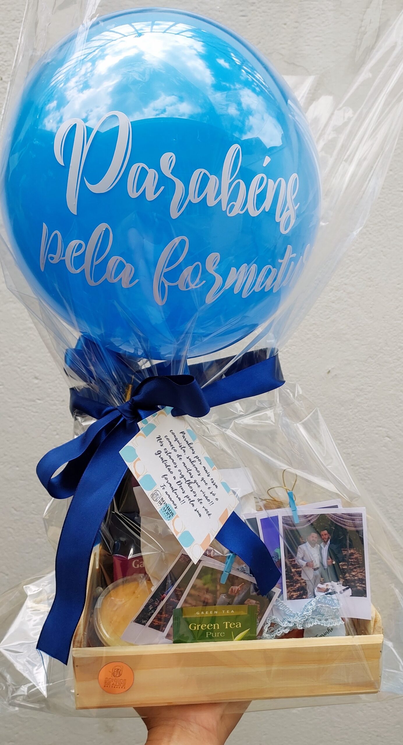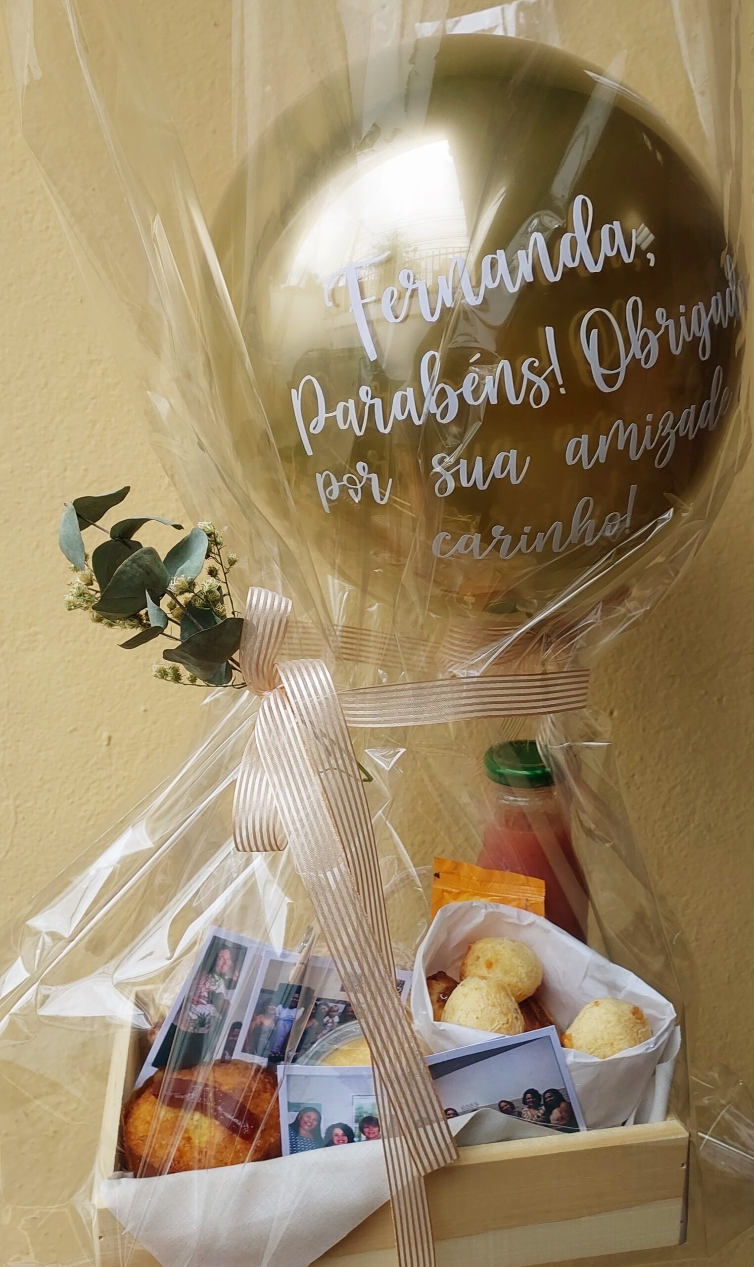 - 1 balão (tamanho M) personalizado com nome ou pequena frase (ex: Te Amo)