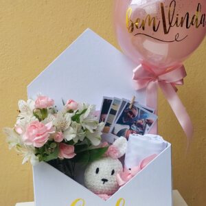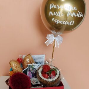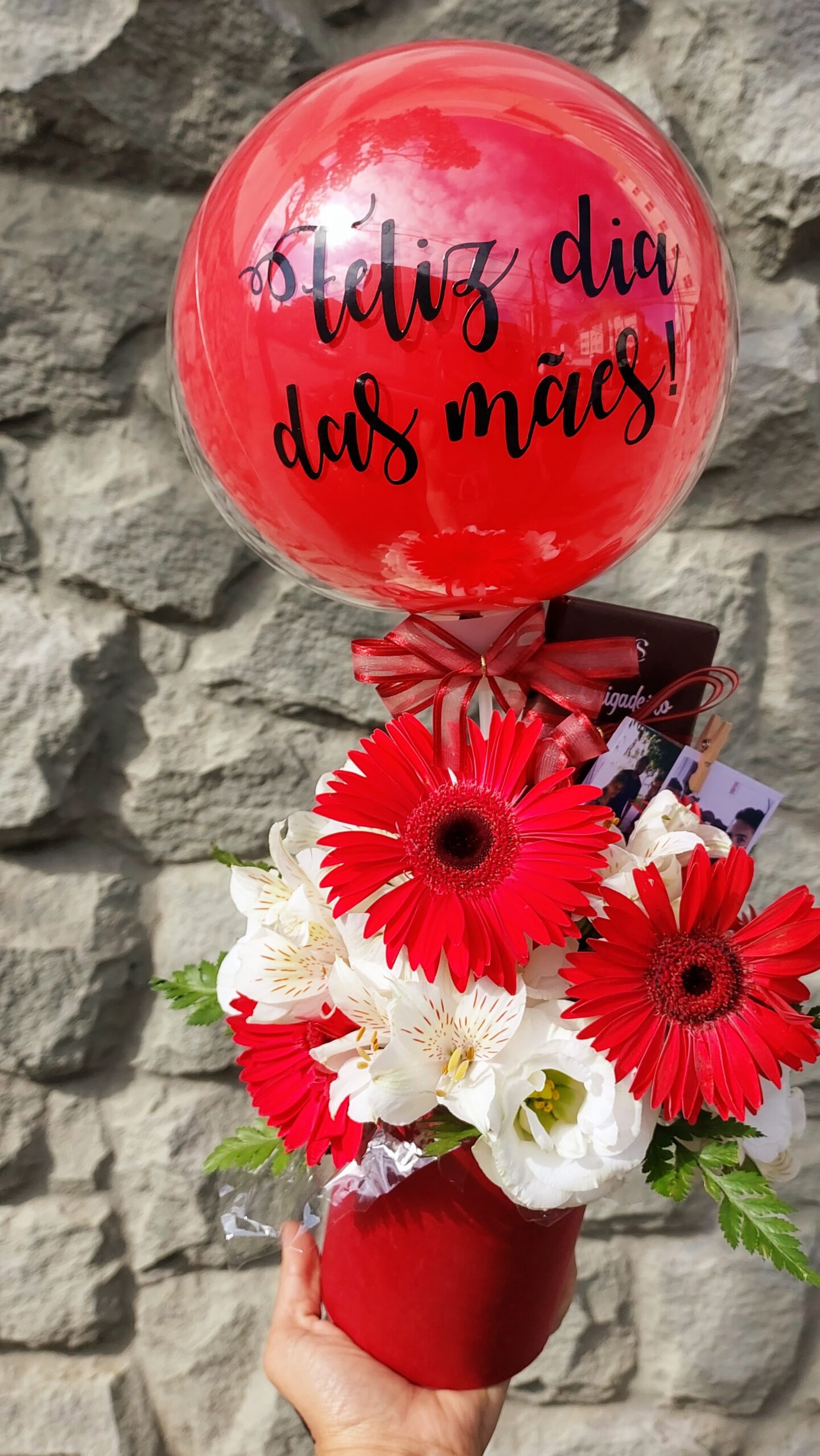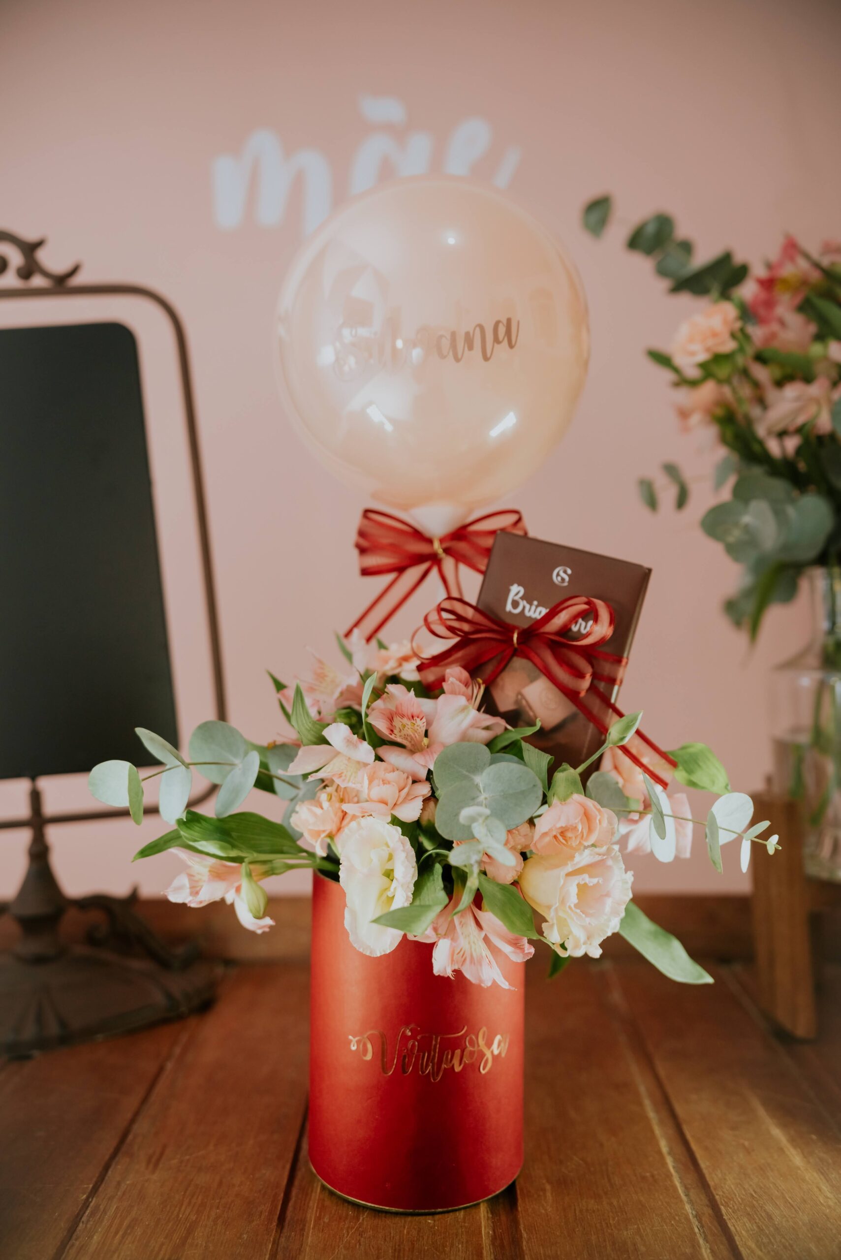 - 1 balão (tamanho M) personalizado com nome ou pequena frase (ex: Te Amo)